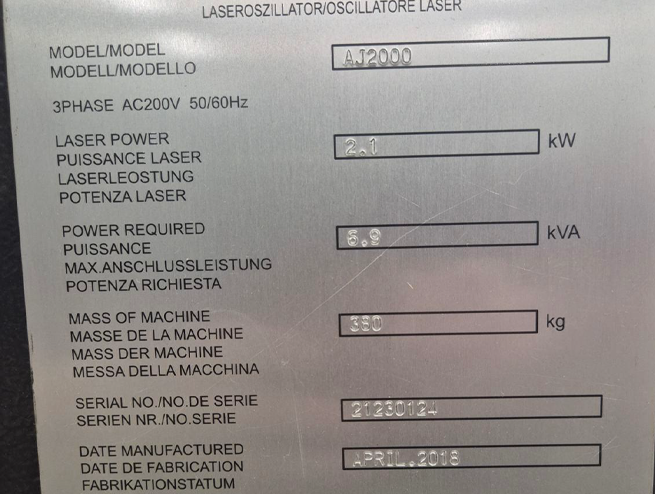 Fiber laser snage 2kW. Stroj je u radnom stanju. Može se vidjeti u radu. Nalazi se u Srbiji.